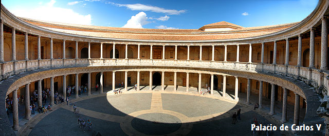 Carlos I mandó a construir un Palacio para residir en Granada, algo que nunca se cumplió. El estilo del Palacio de Carlos V, es renacentista como pueden ver