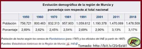 La Región de Murcia tiene actualmente casi un Millón y medio de habitantes (exactamente 1.493.898) en los datos del año pasado.