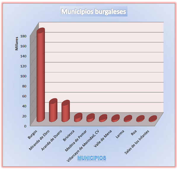 La provincia está escasamente poblada y sólo tres municipios tienen más de 10 Mil habitantes como pueden ver en el gráfico