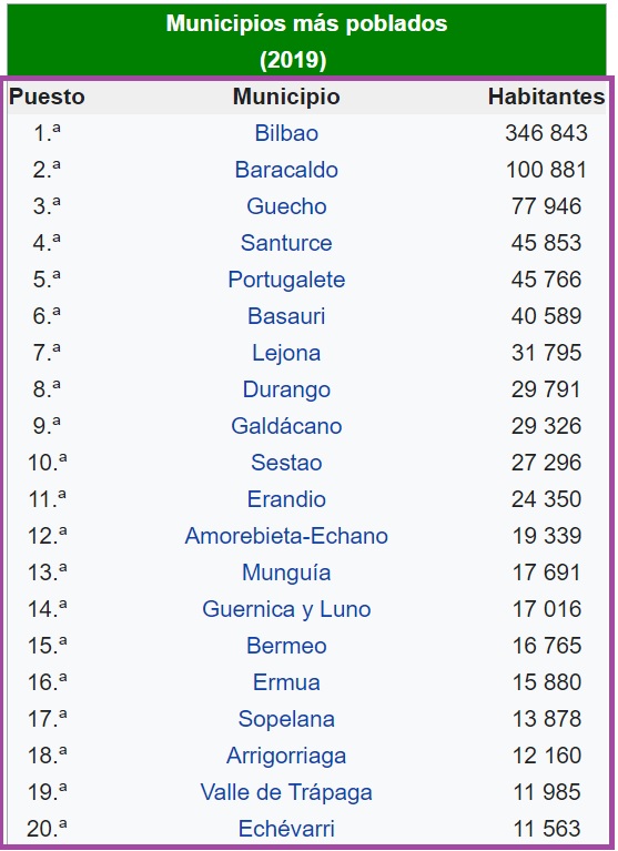 El gentilicio de los habitantes es vizcaíno/a