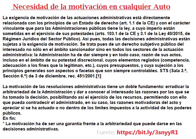 Paréntesis acerca de la necesidad de la motivación en cualquier Auto: