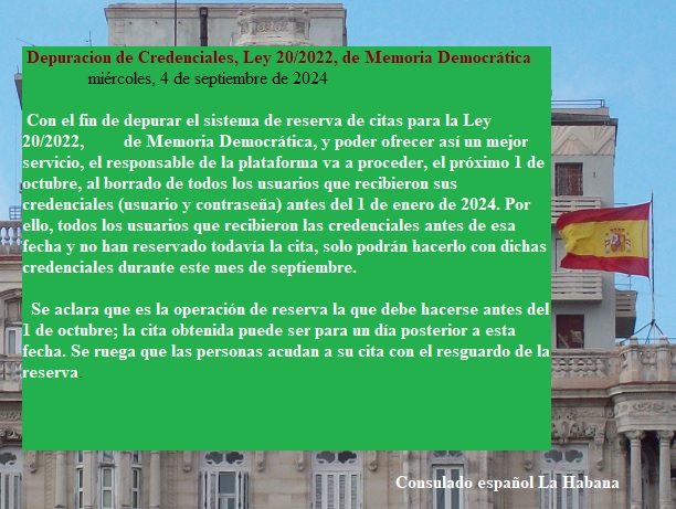 Acaba de salir esta información en la web consular y dice que para mejorar el servicio se van a cancelar las credenciales a aquellos descendientes de emigrantes españoles a Cuba, que no hayan efectuado su solicitud de la cita si estas credenciales fueron solicitadas antes de diciembre de 2023. En esta imagen vemos el contenido de la información consular…