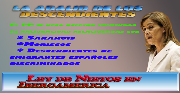 - A pesar de las promesas del PP el gobierno se niega a la inclusión en la normativa de otros colectivos como son los moriscos, los saharauis y los descendientes de emigrantes españoles que quedaron fuera en la Ley de Nietos